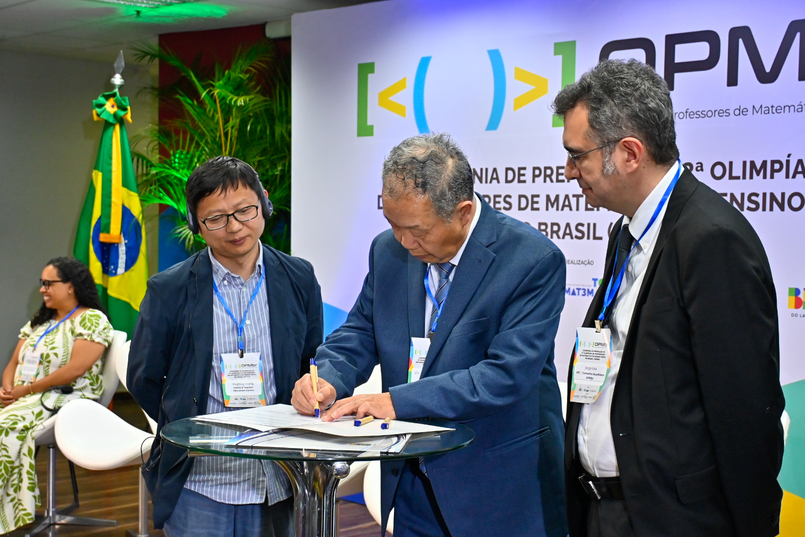 After the session, Professor Hu Guoyong and Professor Huang Xingfeng, together with Brazilian representative Professor Jorge Lira, signed a Letter of Intent on cooperation in mathematics education. The agreement outlines initial collaboration on jointly establishing a “National Center for Research and Training for the Teaching and Learning of Mathematics” in Brazil, as well as cooperation in teacher training, joint research, and resource development.